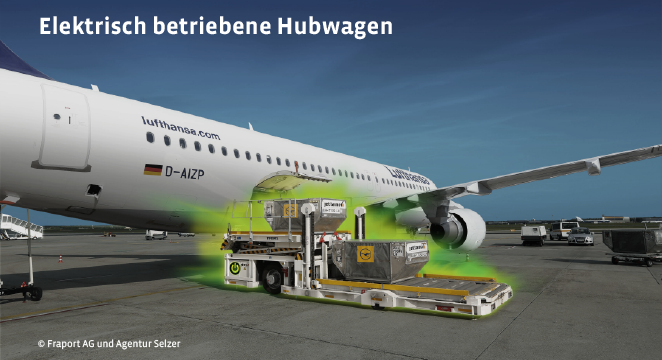 Der Flughafen Frankfurt, Lufthansa und das Land Hessen wollen mit der Initiative „E-Port On“ zeigen, dass sich elektrische Antriebe für viele Fahrzeuge und Anwendungen eignen. Schon heute werden etwa 25 Prozent der Betriebsfahrzeuge am Flughafen Frankfurt elektrisch angetrieben. Das Projekt wurde bereits im Jahr 2013 von der Bundesregierung mit dem Prädikat „Leuchtturm der Elektromobilität“ ausgezeichnet.